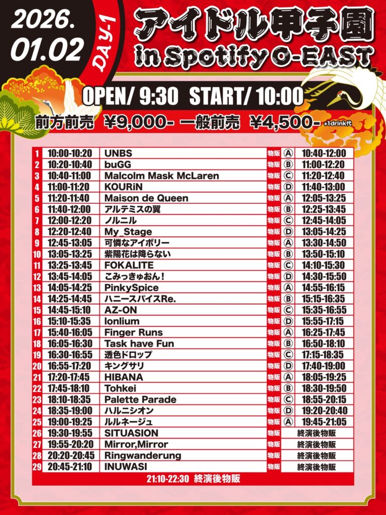 2026年1月2日(金)に開催される『アイドル甲子園 in Spotify O-EAST -DAY1- 』に出演することが決定しました!