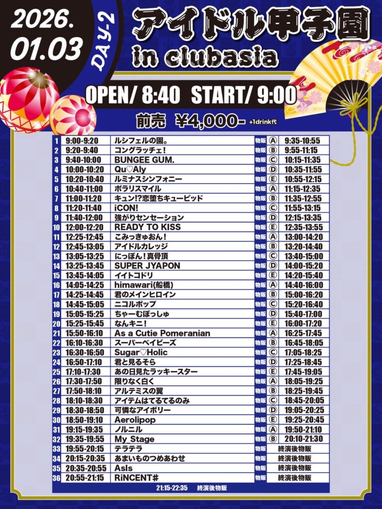 2026年1月3日(土)に開催される『アイドル甲子園in clubasia-DAY2-』に出演することが決定しました!