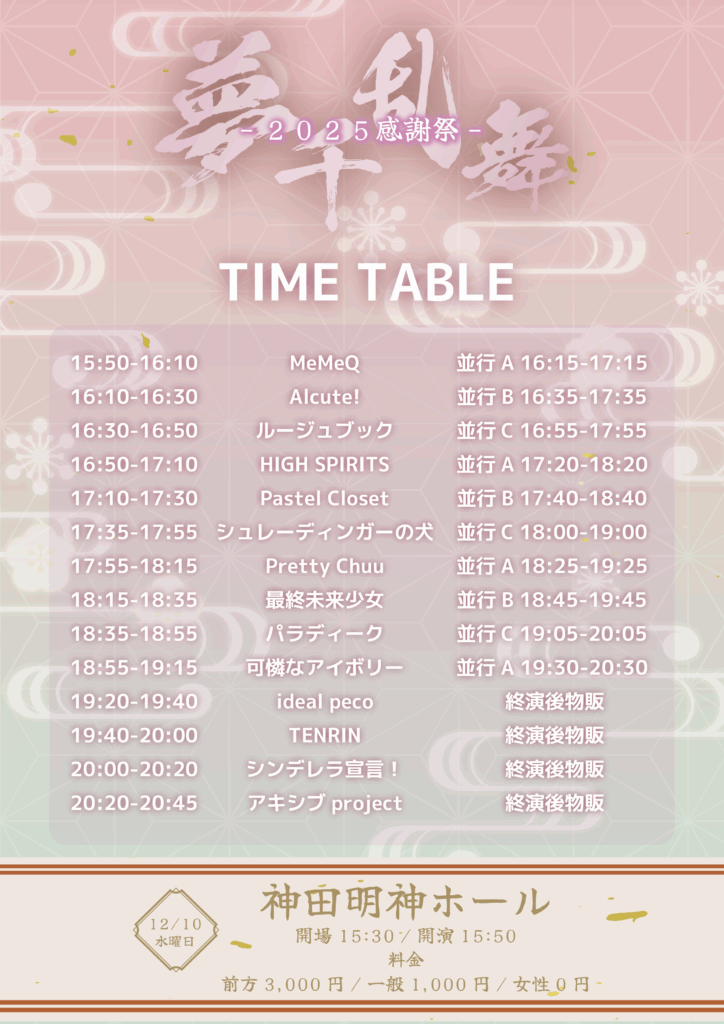 2025年12月10日(水)アキシブproject presents『夢千乱舞-2025感謝祭-』に出演することが決定しました!