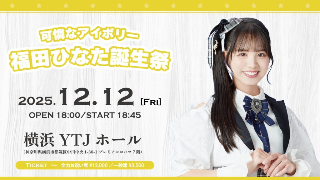 本公演では、『可憐なアイボリー福田ひなた 誕生祭2025』グッズおよび特典会参加券を販売致します。