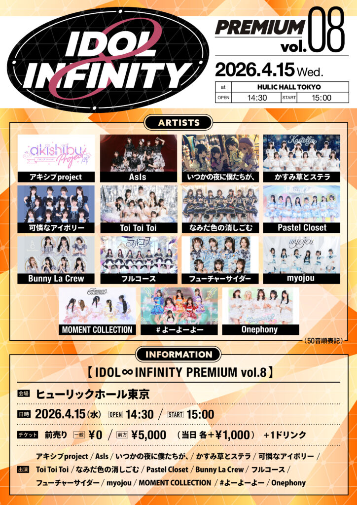 2026年4月15日(水)開催『IDOL ∞ INFINITY PREMIUM vol.8』に出演させて頂きます。