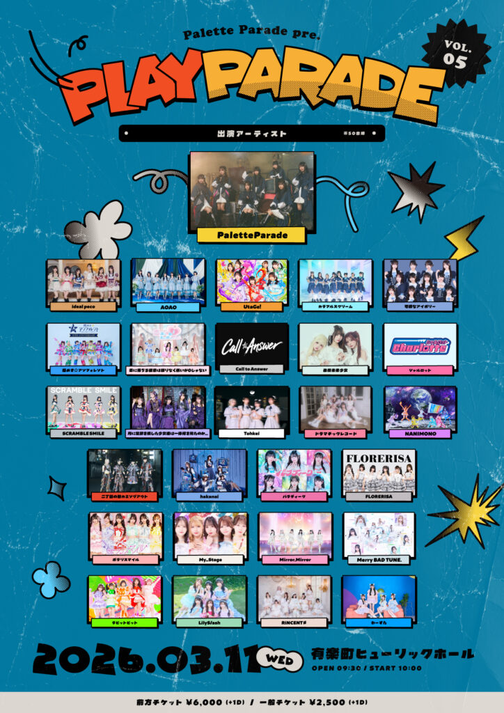2026年3月11日(水)に『PLAY PARADE vol.5』に出演させて頂きます。