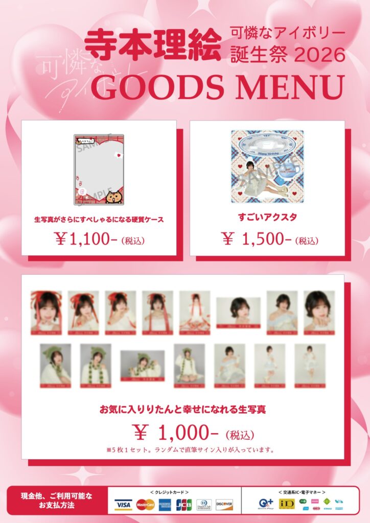 本公演では、『可憐なアイボリー 寺本理絵 誕生祭2026』グッズおよび特典会参加券を販売致します。