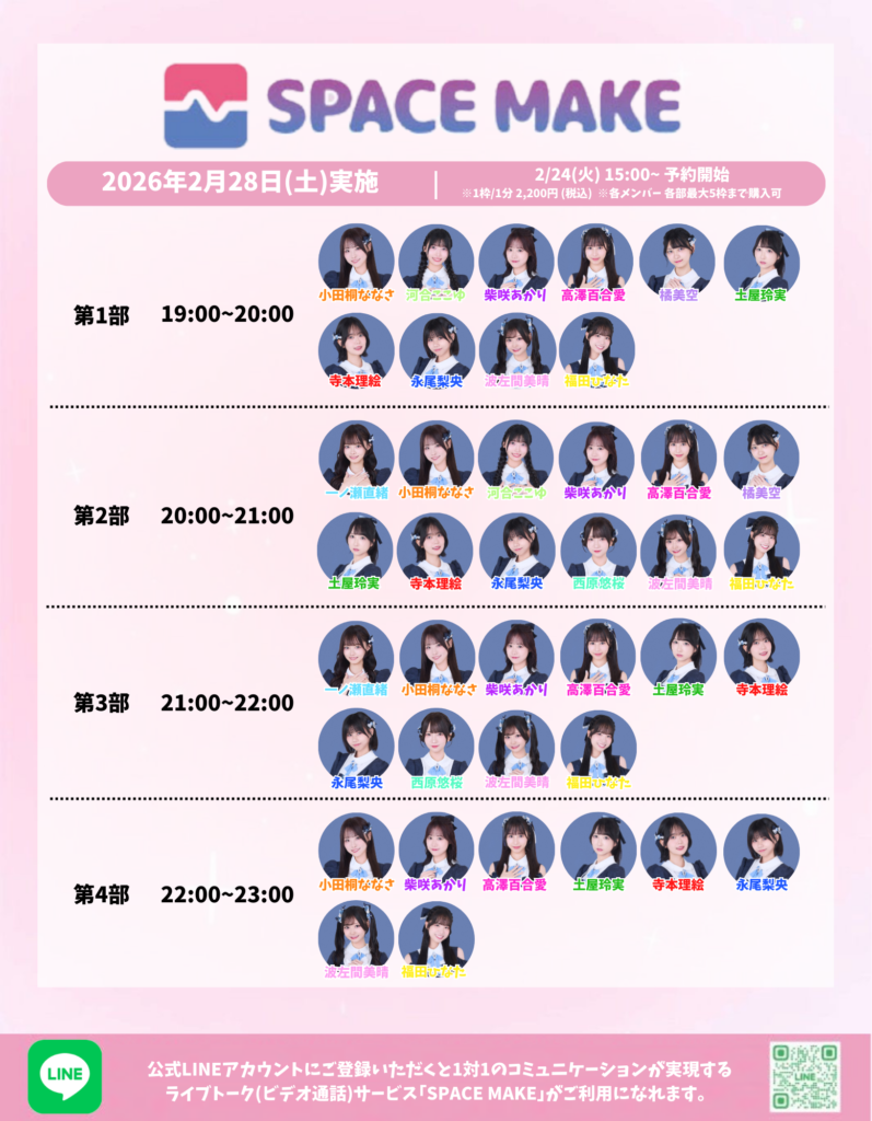 1対1のコミュニケーションが実現するライブトーク(ビデオ通話)サービス「SPACE MAKE」にて「可憐なアイボリーとオンライン個別お話し会」を開催致します。