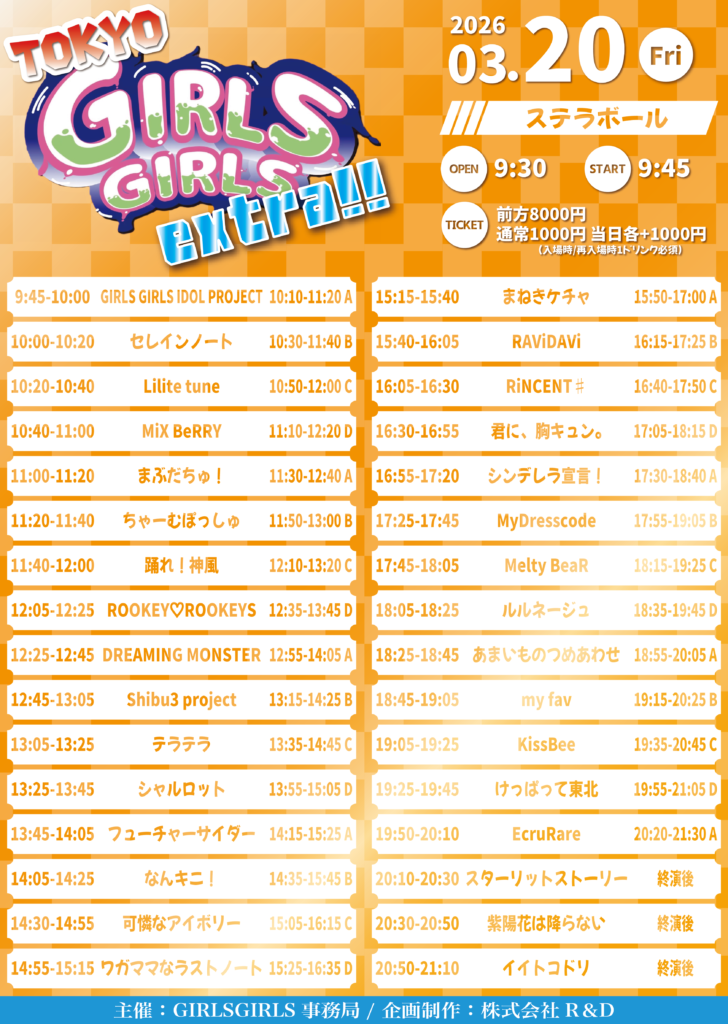 2026年3月20日に「TOKYO GIRLS GIRLS extra!!」に出演させて頂きます!