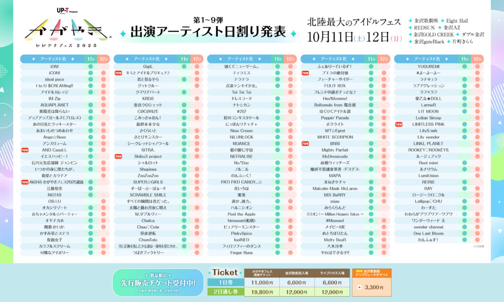 2025年10月11日(土)、12日(日)に開催される『UP-T presents かがやきフェス2025』に出演することが決定しました!