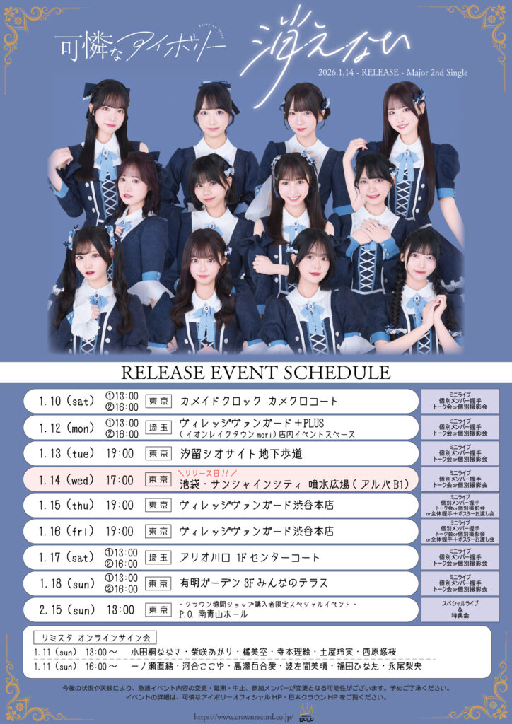 可憐なアイボリー メジャー2ndシングル「消えない」リリース記念イベント追加情報!